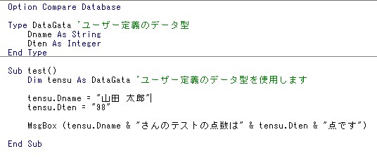 Type 自分で定義するデータ型名 ~ End Type