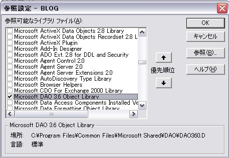 ADO(AciveX Access Objects)やDAO(Data Access Objects)はVBEの画面上から一度設定を行うことが必要です。