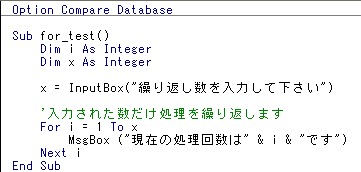 For i = 1 to 3 となり処理が三回繰り返されるわけです。