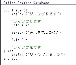 ただしジャンプ先は必ずプロシージャ内で他のプロシージャにはジャンプすることができません。